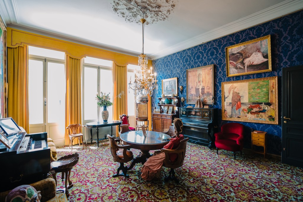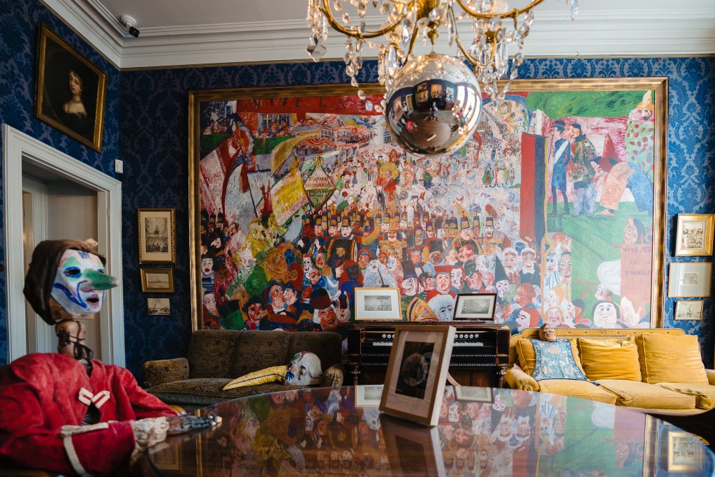 Der Rundgang führt vorbei an Reproduktionen seiner wichtigsten Werke und in den Blauen Salon, der Ensor auch als Atelier diente. Eine perfekte Einführung in das Leben des radikalen Exzentrikers, der in Ostende mit seiner Mutter, seiner Tante und seiner Schwester unter einem Dach lebte. Die Familie lebte von den Einnahmen ihrer Souvenirläden, von denen es in Ostende sechs gab. Drei davon gehörten den Ensors. Diese Souvenirläden dienten James Ensor als Inspirationsquelle. Genauso wie die Tradition des Ostender Karnevals. Dass der Maler 1898 einen philanthropischen Masken- und Kostümball ins Leben rief, hinterlässt bis heute Spuren: Der "Ball der toten Ratte" findet jedes Jahr Anfang März statt.