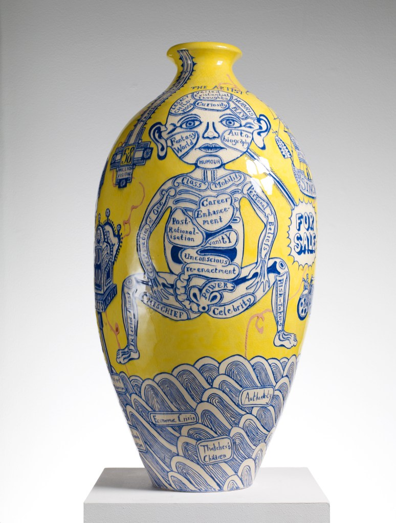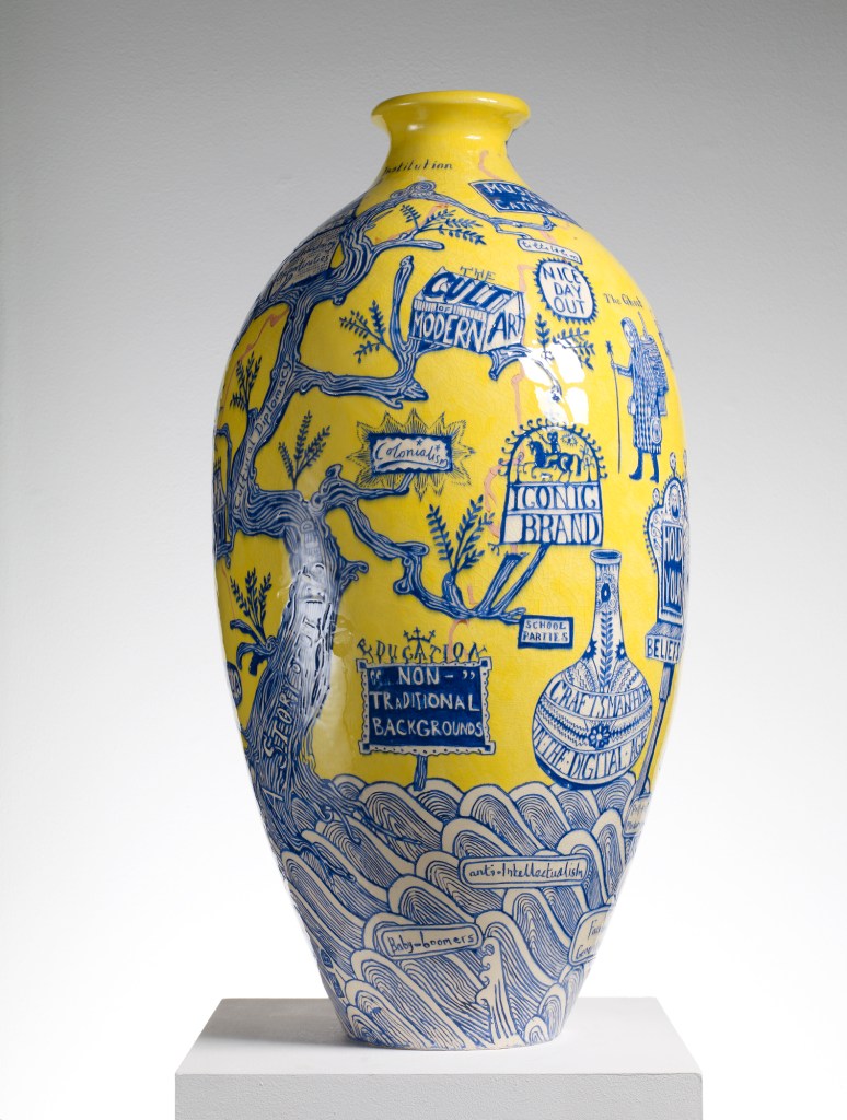 Wahrscheinlich ist Grayson Perry der prominenteste Künstler, den man mit diesen Fragen in Verbindung bringen kann. Wenn man sich mit seiner Entwicklung beschäftigt, stellt man fest, dass er vom breiten Kunstpublikum erst wahrgenommen wurde, als ihm der Turner-Preis verliehen wurde. Damals hieß es: "the judging panel admired his use of the traditions of ceramics." Schon damals ging es also um Perrys Vasen.